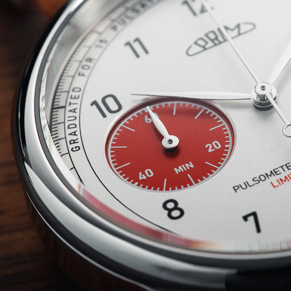 K 150ti letému výročí vznikl ve spolupráci s našimi designéry chronograf opatřen tzv. pulsometrickou stupnicí umožňující snadné orientační měření srdečního tepu. Funkce pulsometru je velmi prostá. Po stisku tlačítka chronografu je potřeba napočítat 15 srdečních tepů a poté chronograf zastavit. Hlavní ručička chronografu ukáže na stupnici vaši aktuální tepovou frekvenci. Tento chronograf lze však použít i jako klasické stopky a to s přesností ¼ sekundy dohromady až maximálně 59 minut 59 sekund.